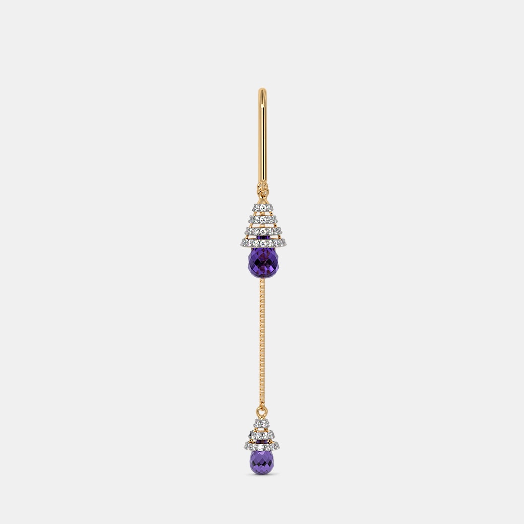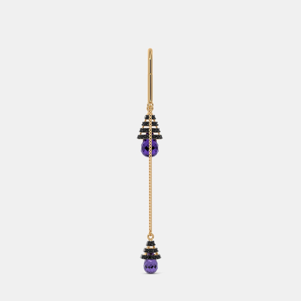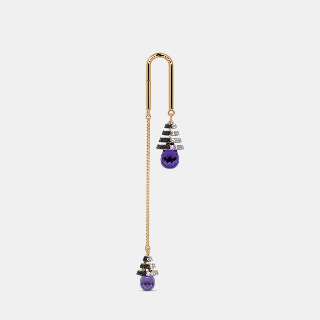 Diamond , Simulant Black Spinel And Amethyst Earrings In 18Kt Yellow Gold