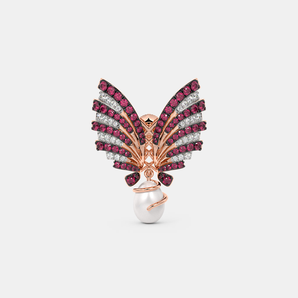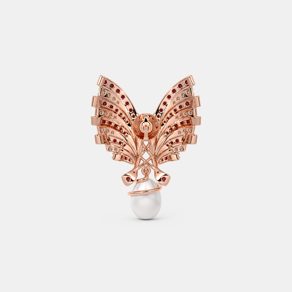 Diamond , Synthetic Ruby And White Pearl HD Earrings In 18Kt Rose Gold
