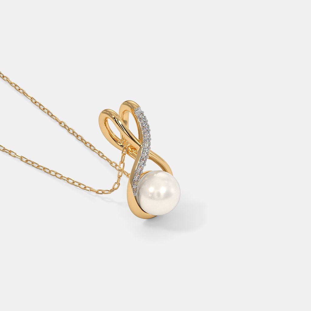 Diamond And White Pearl HD Pendant In 14Kt Yellow Gold
